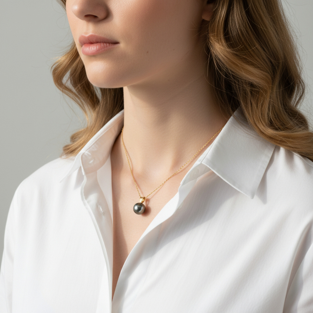 Pendentif Perle de culture de Tahiti 9mm montée sur Or Jaune 750