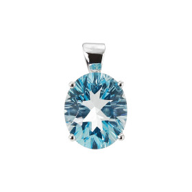 Bague Or blanc 375 Topaze Bleue Ovale 9x7mm et Diamant