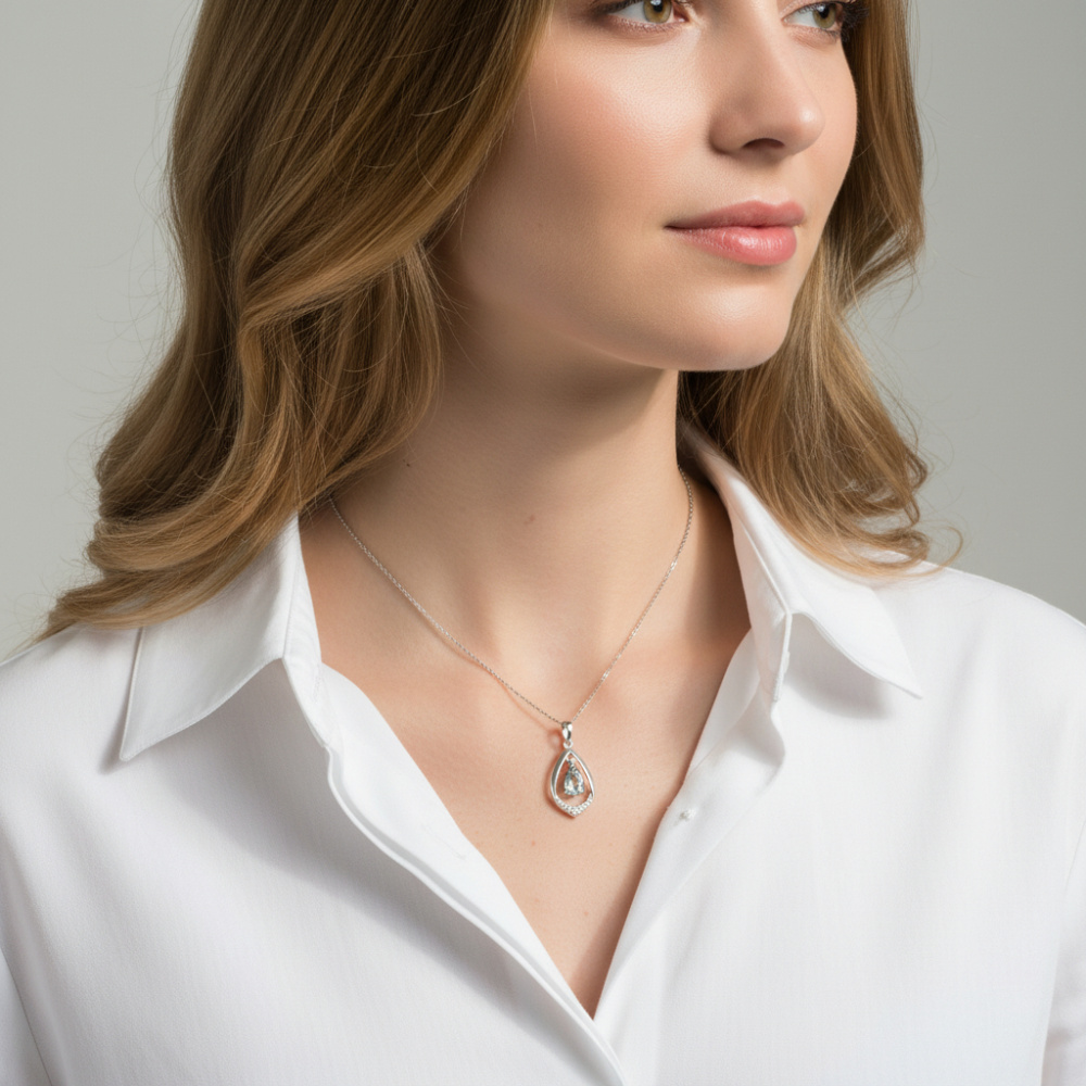 Pendentif or blanc 375 Topaze Bleue poire 6x4 et diamant