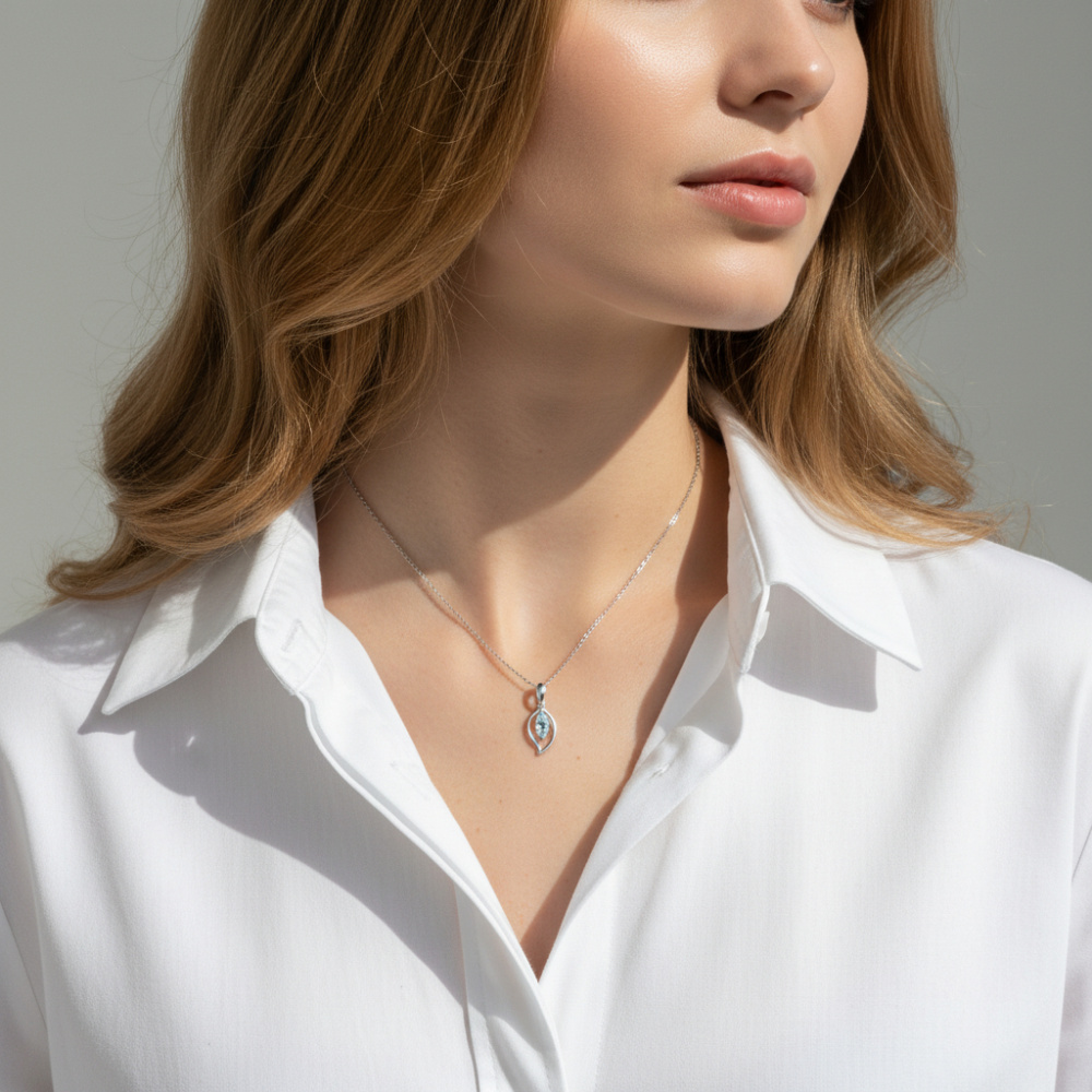 Rehaussez votre tenue en accessoirisant votre chaîne de cou par ce pendentif. Il présente un joli design et est agrémenté d'une topaze bleue. La pierre est en forme de navette, elle est montée sur un corps à griffes et disposée à l'intérieur de la monture donnant un effet suspendu. La bélière fait partie de ce bijou, elle dessine aussi une forme navette et est unie par la monture par un petit anneau. Ce joli pendentif en or blanc brillera de toute sa splendeur sur votre buste.