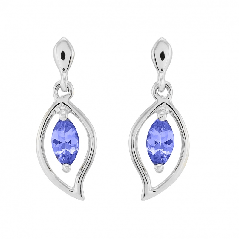 Boucles d'oreilles Or blanc 375 Tanzanite navette 6x3mm