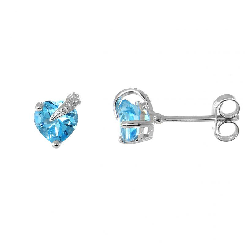 Boucles d'oreilles Or blanc Topaze Bleue traitée Coeur