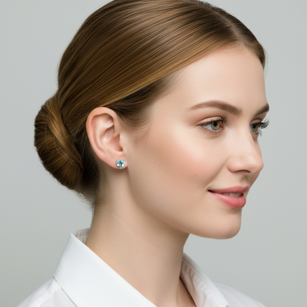 Ce sont des puces d'oreilles en or blanc ornées de topaze bleue traitée.