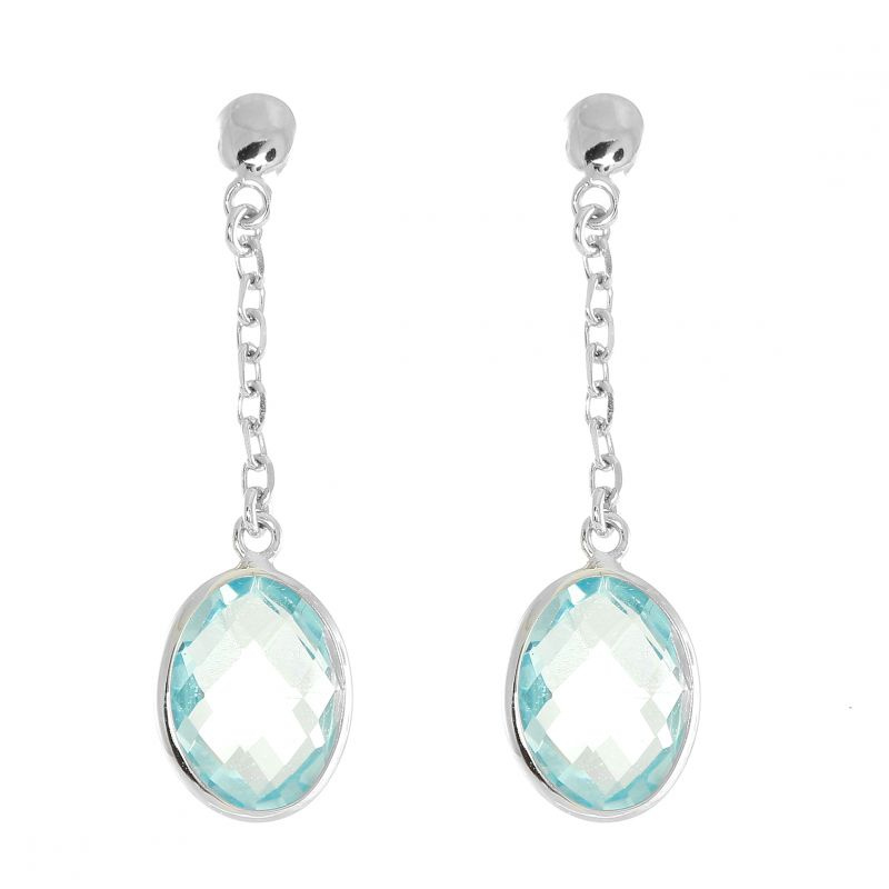 Ces bijoux sont élaborés dans de l'or blanc et agrémentés de topaze bleue traitée.