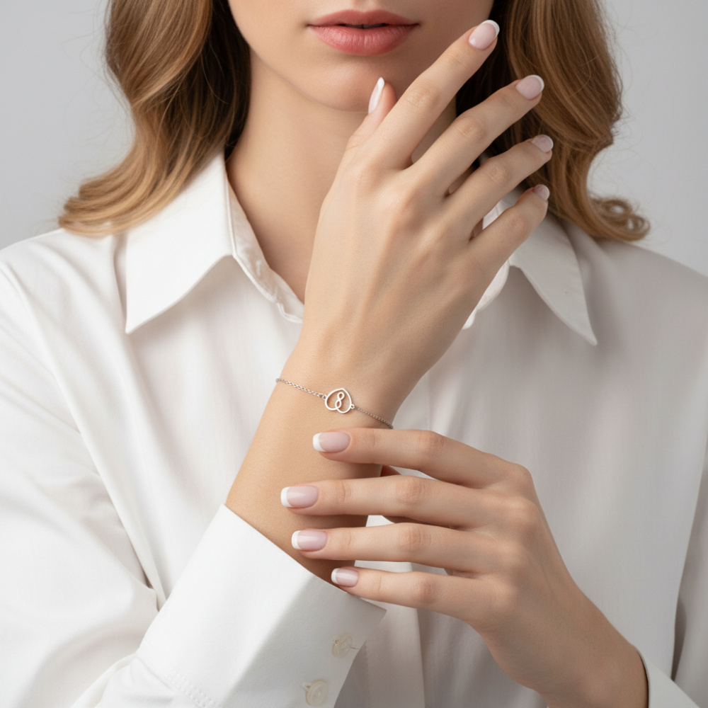 Bracelet argent motif coeur avec à l'interieur de celui-ci un signe infini vertical