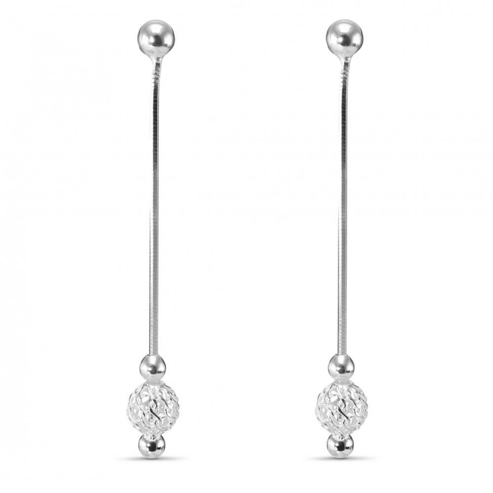 Boucles d'oreilles argent pendantes chaine maille serpent avec boule ajourée