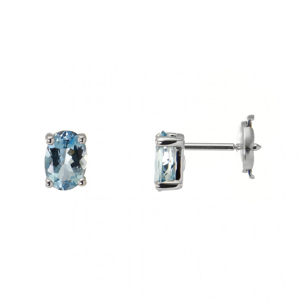Ces boucles d'oreilles ne peuvent qu'illuminer votre teint. Elles se distinguent par la sobriété de leur design et leur beauté est caractérisée par la monture en or blanc et l'aigue-marine qui les agrémentent. Ces boucles sont des puces d'oreilles avec un corps à quatre griffes. La pierre est fixée par les griffes qui épousent parfaitement ses courbes pour venir se poser délicatement sur le dessus. Les corps présentent un aspect brillant et lisse en harmonie avec la transparence de la pierre. Ces jolies boucles sont pourvues de gurdian comme système de fermeture.
