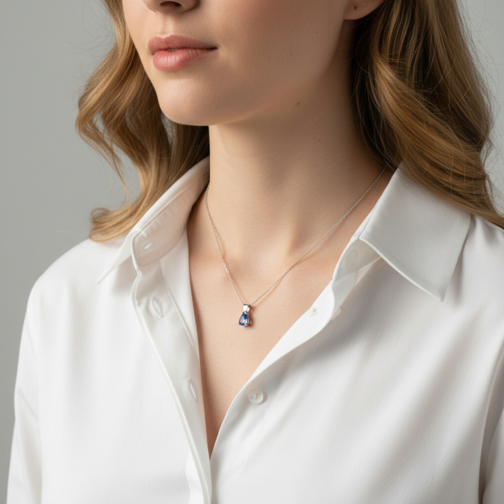Pendentif Or Blanc 750 Saphir de Ceylan Poire 7x5mm