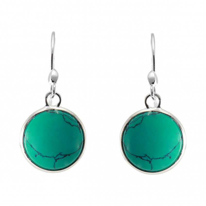 Boucles d'oreilles Pendantes Argent 925 Turquoise Reconstituée Ronde 12mm