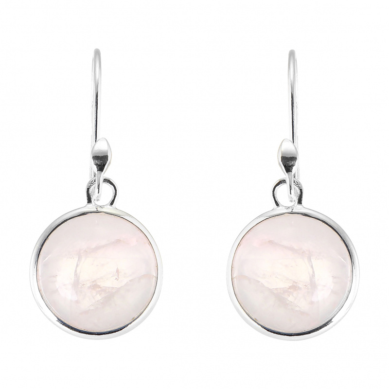 Boucles d'oreilles Pendantes Argent 925 Quartz rose Rond 12mm