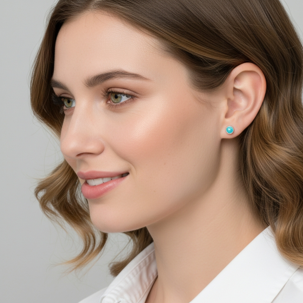 Boucles d'oreilles Argent 925 Turquoise reconstituée Rondes facettées 5mm
