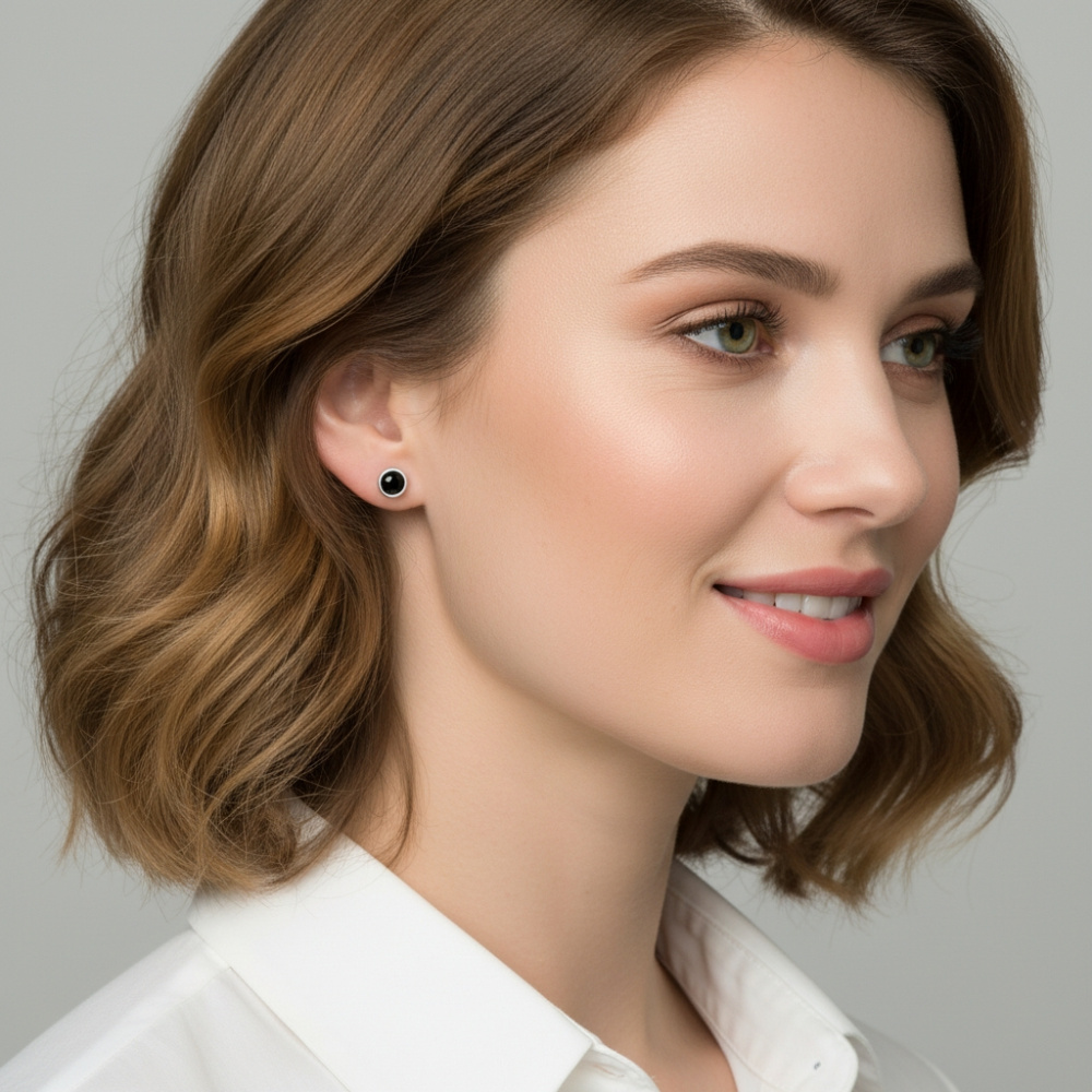 Boucles d'oreilles Argent 925 Onyx Ronds facettés 5mm