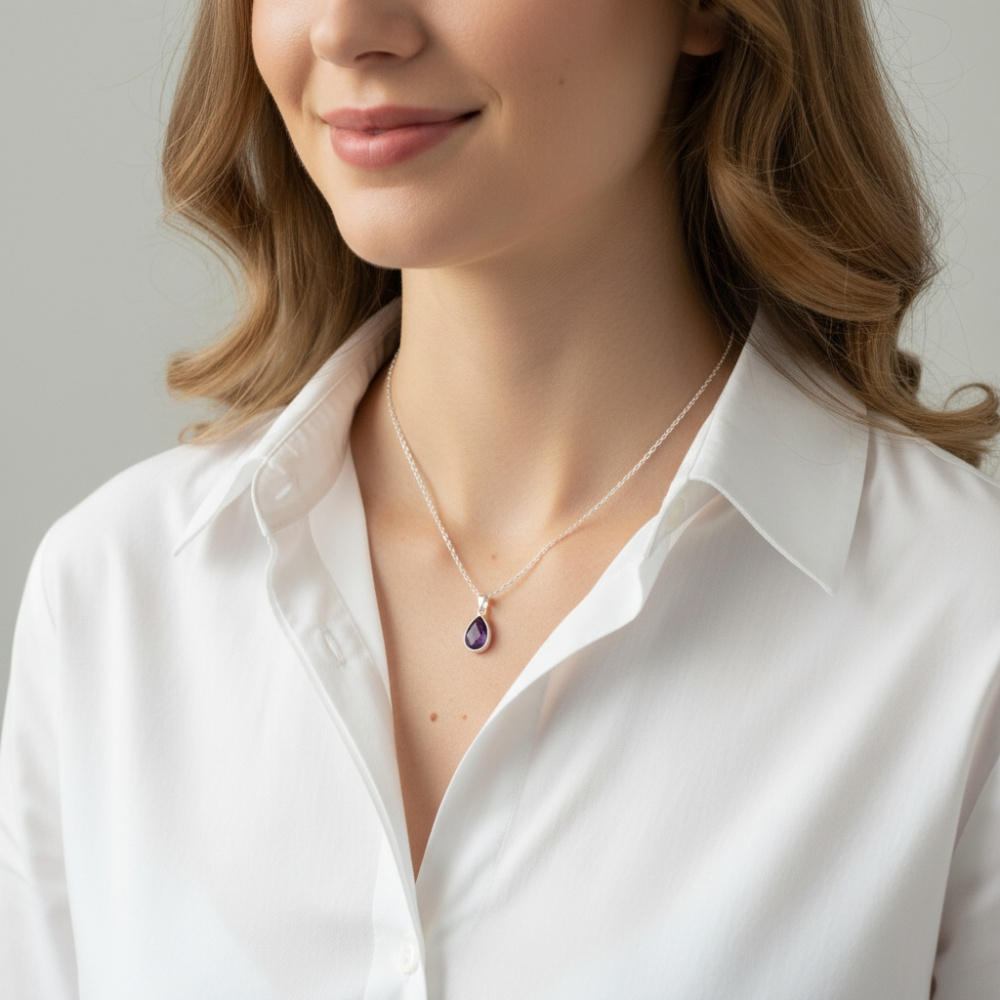 Pendentif Argent 925 Améthyste Poire facettée 12x8mm
