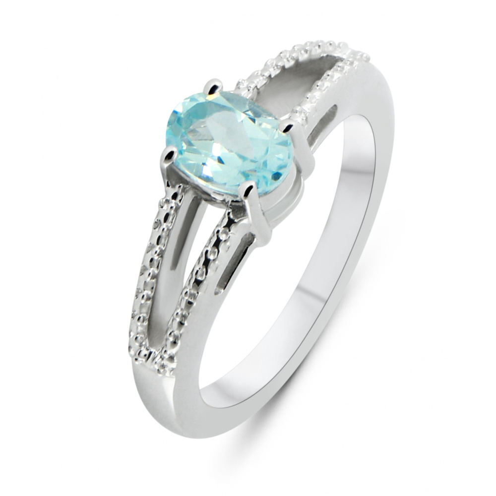 Bague Argent Rhodié Topaze Bleue traitée Ovale 7x5mm