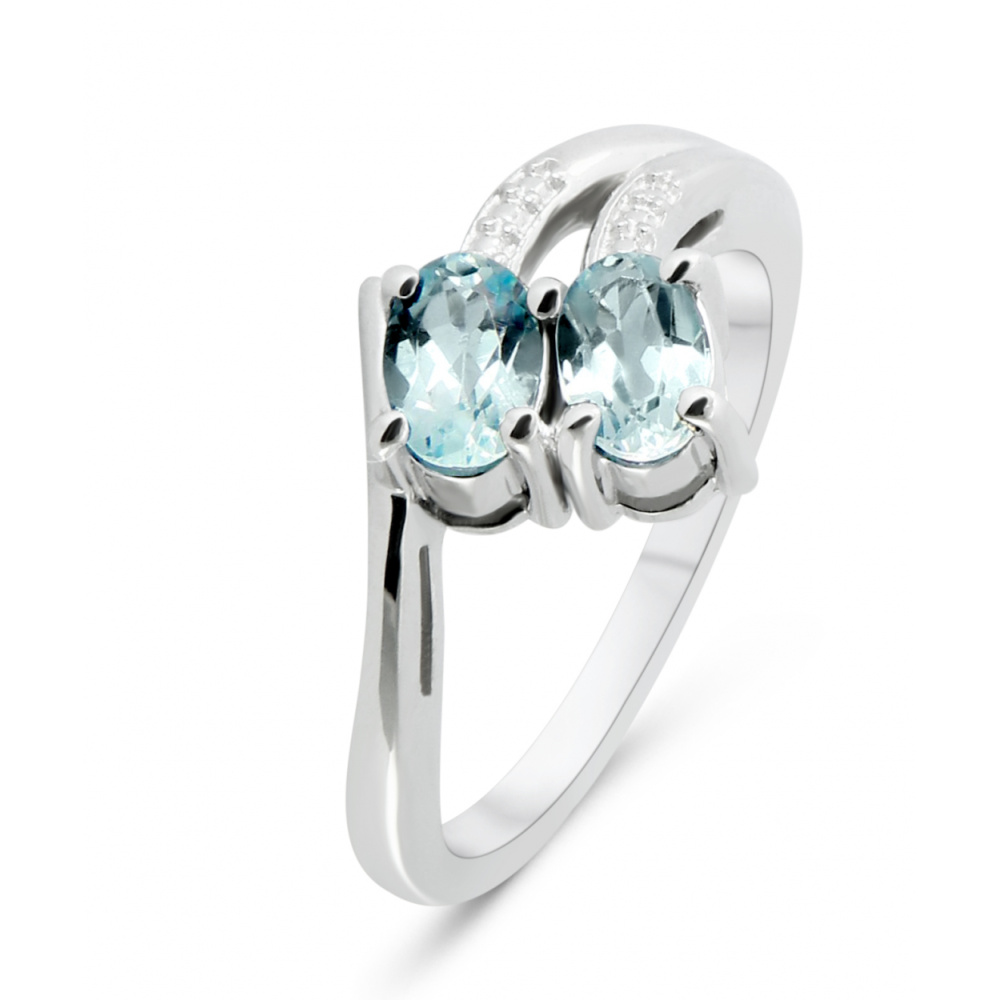 Bague Argent Rhodié 2 Topazes bleues traitées ovales de 6x4mm