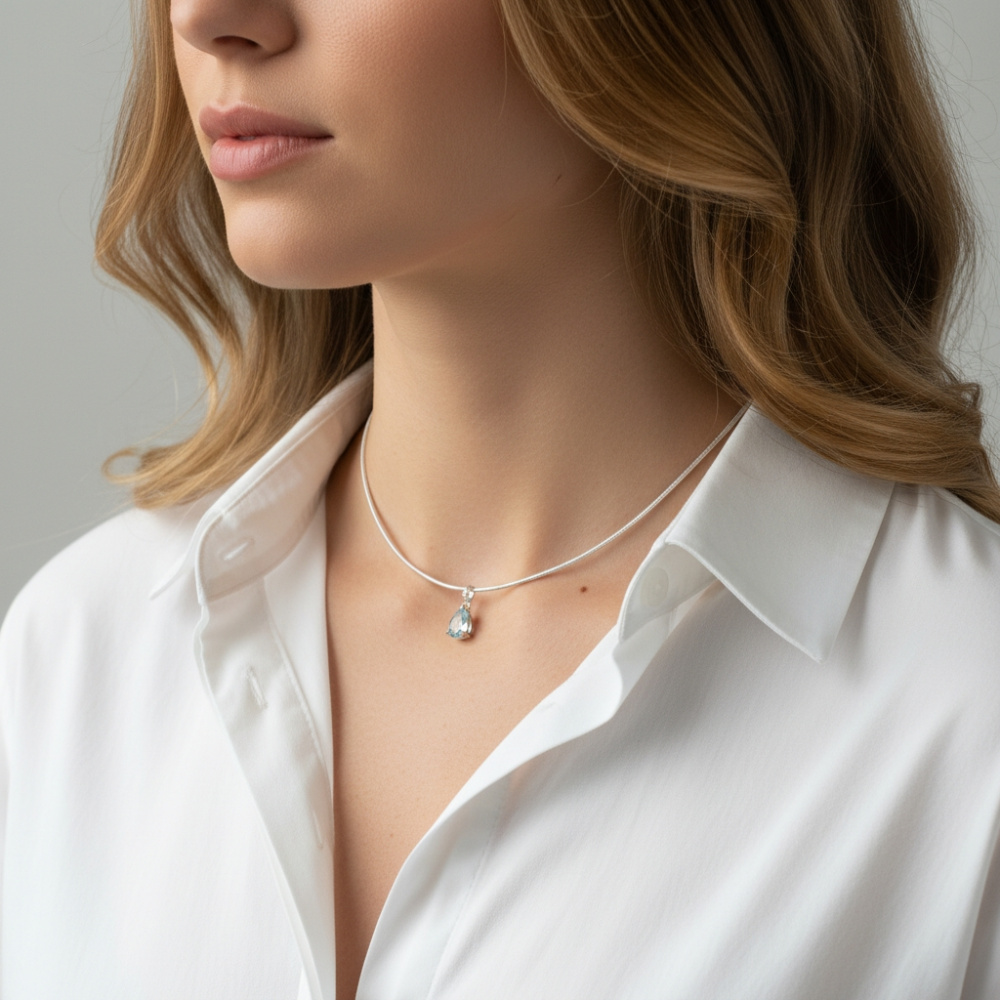 Pendentif Argent Rhodié Topaze Bleue Traitée Poire 10x7mm