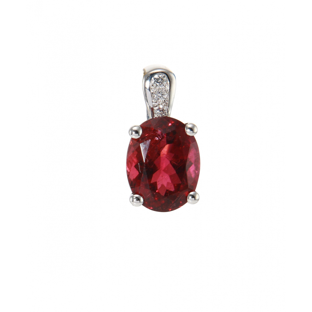 Pendentif en Or Blanc 750 serti d'une Tourmaline rose ovale de 9x7mm (2.05 carats) et de 3 diamants pour un poids total de 0,03 carat