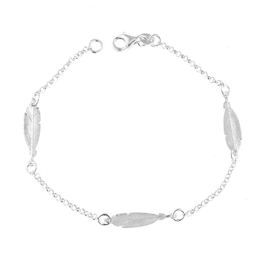 Pour orner avec beauté votre poignet, choisissez ce bracelet. Il est constitué de mailles rondes qui s'entrelacent, intercalées de trois plumes. Ces motifs sont délicatement sculptés avec finesse, on note les rainures pour former la plume. De part et d'autre, elle est fixée aux mailles par un anneau. À l'occasion d'un anniversaire, ce joli bracelet fera aussi un cadeau parfait pour une personne au style classique. Il est en argent et présente une longueur unique.
