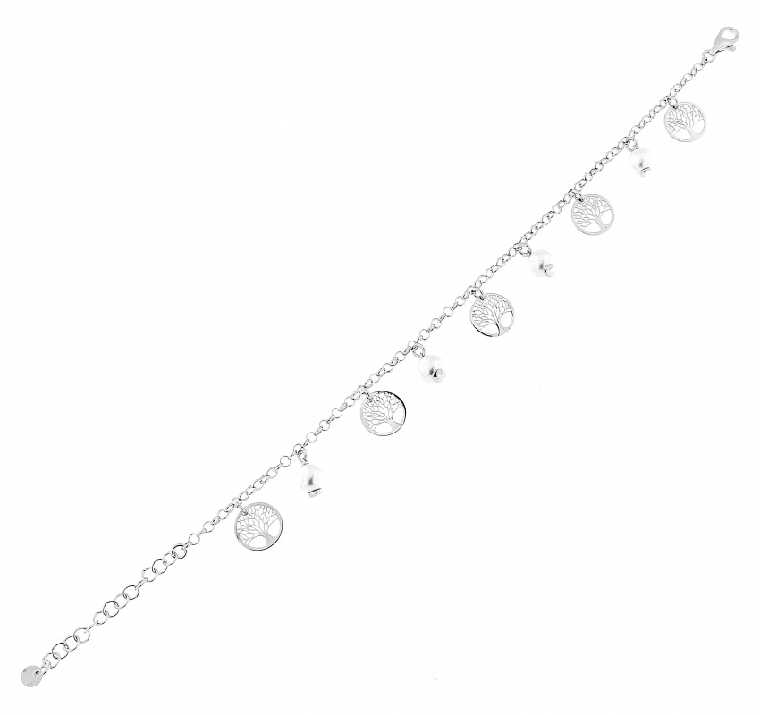 Bracelet argent rhodié breloques perles de culture et arbre de vie - Ref : 45017