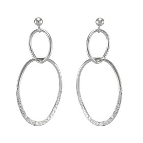 Boucles d'oreilles martelées ovales en argent rhodié motif arbre de vie