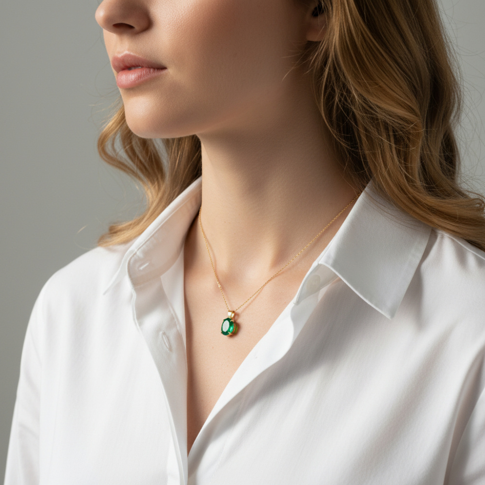 Pendentif en Or Jaune 750 serti d'une émeraude ovale de 10x8mm