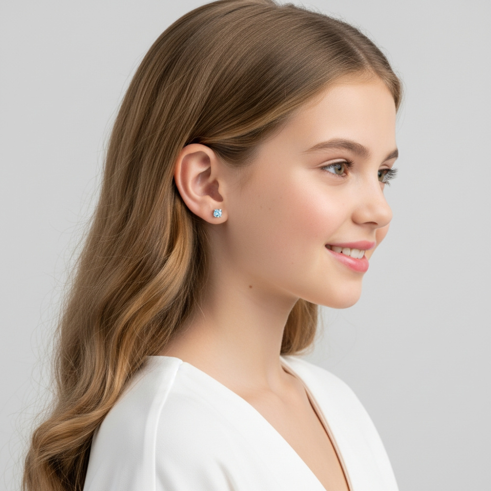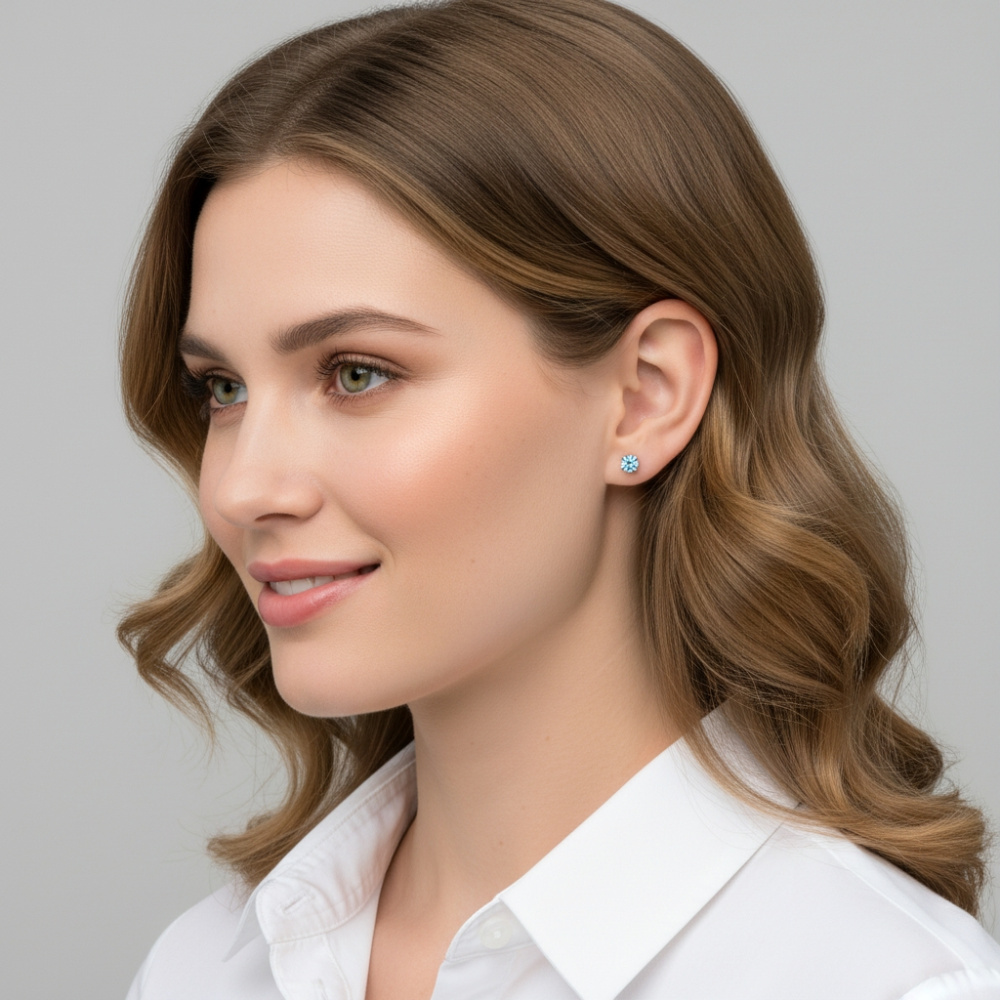 Boucles d'oreilles Or blanc 375 Topaze Bleue traitée Ronde 3mm
