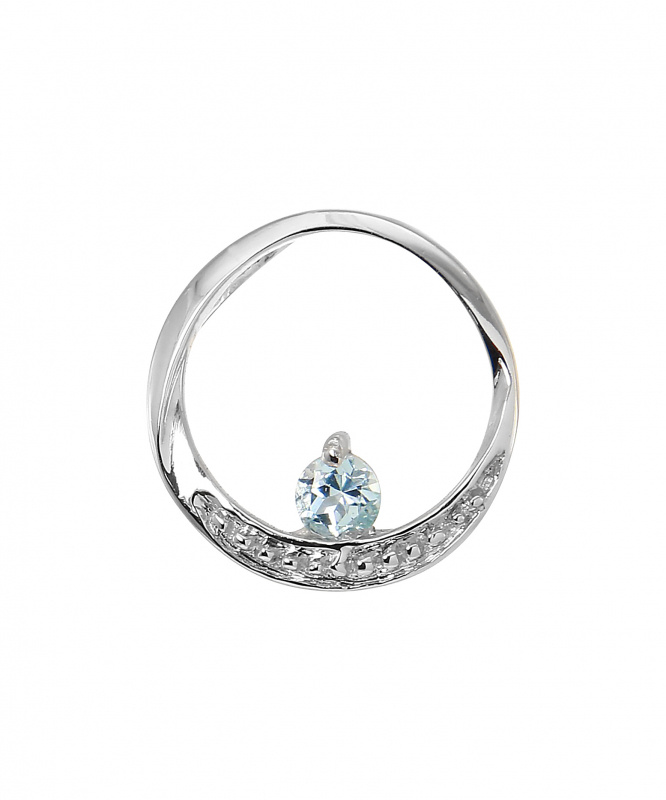 Pendentif Rond Or blanc 375 Topaze Bleue traitée 3mm