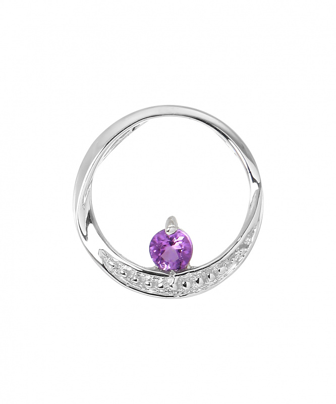 Pour ajouter une touche de coquetterie à votre style, adoptez ce pendentif. Il vous plaira pour la subtilité de sa monture qui est formée par un cercle. La partie basse est légèrement torsadée pour contenir un joli motif. Sa présence rehausse la beauté de l'améthyste disposée à l'intérieur et en bas du cercle pour agrémenter ce bijou. La pierre est de forme ronde et elle est fixée par une griffe. Sa couleur vive s'accorde avec la monture en or blanc.