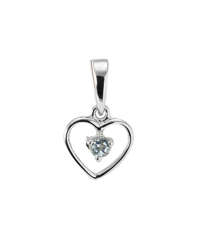 Pendentif Coeur Or blanc 375 et Topaze Bleue traitée