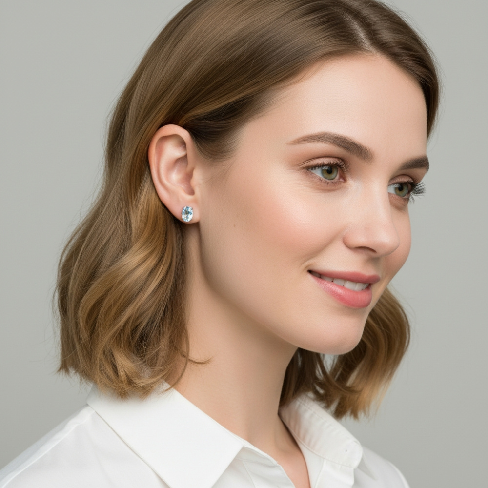 Puces d'oreilles Or blanc 375 Topaze bleue traitée Ovale 7x5mm