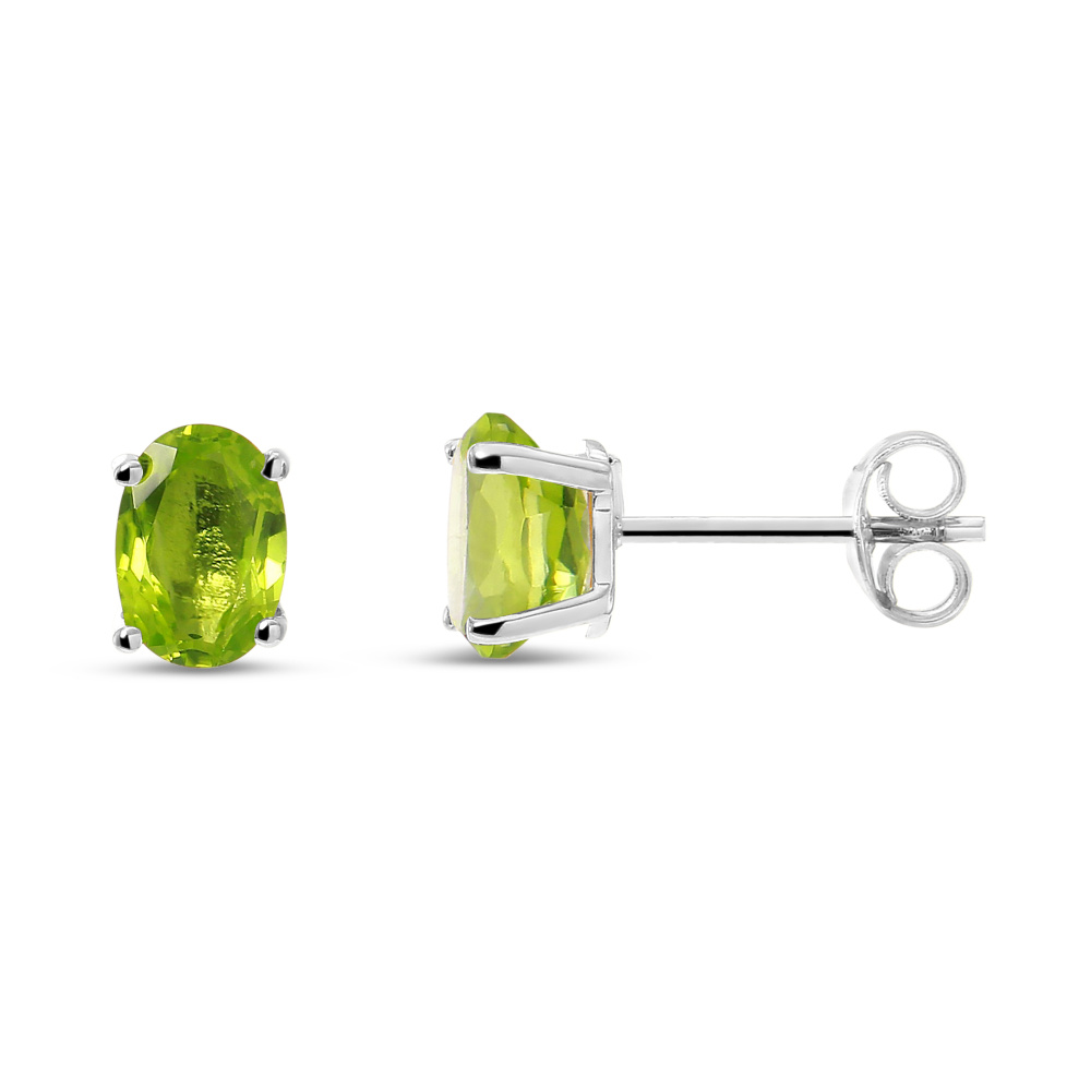 Puces d'oreilles Or blanc 375 Péridot Ovale 7x5mm - Ref : 46175