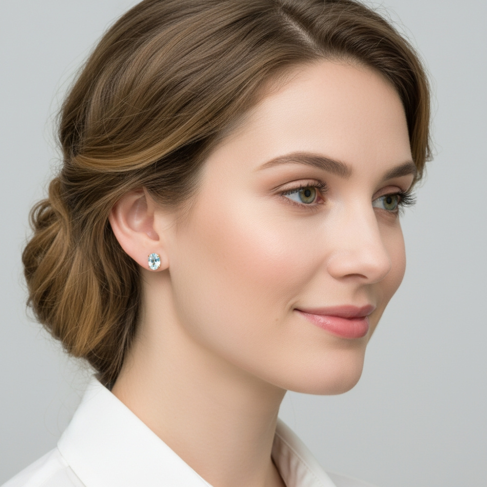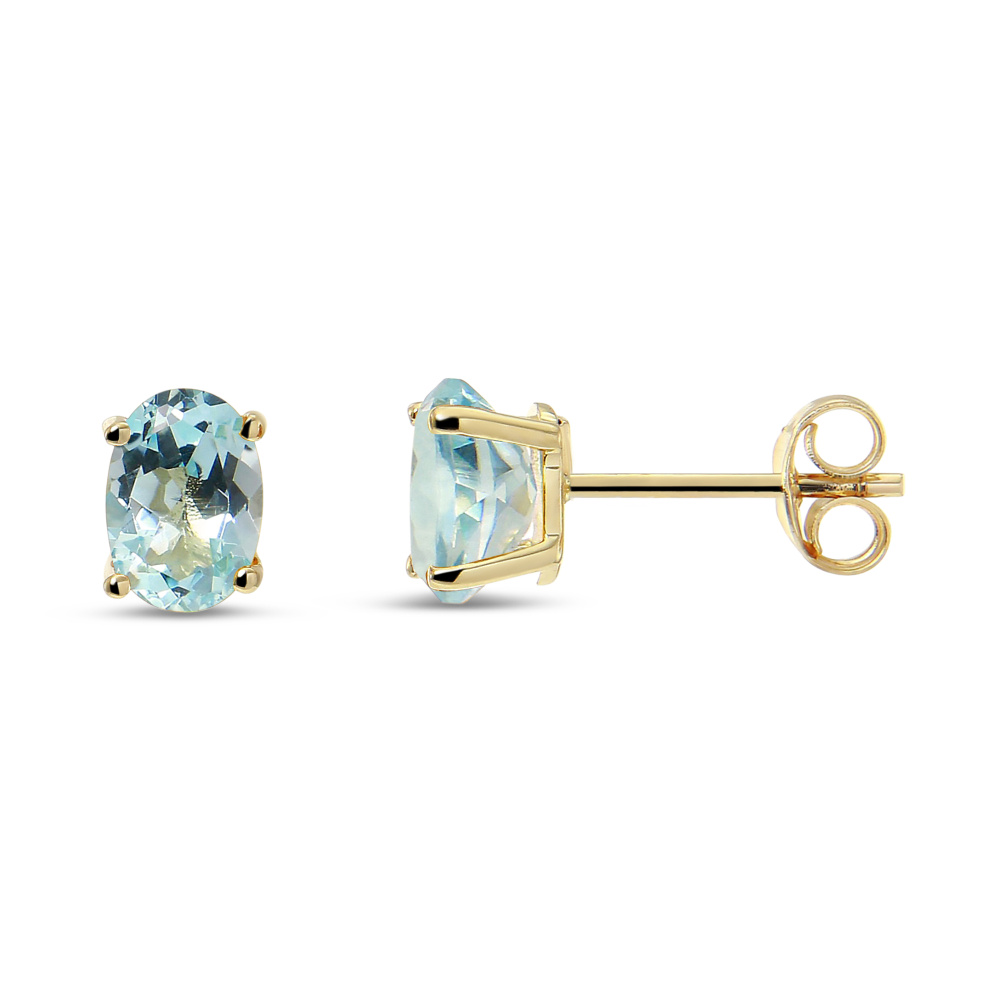 Puces d'oreilles Or jaune 375 Topaze bleue traitée Ovale 7x5mm