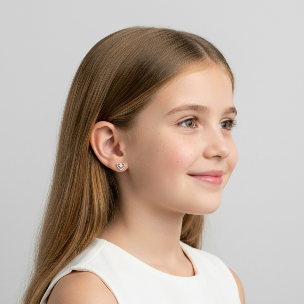 Motif coeur de 7x7mm avec une pierre ronde de 2.5mm au centre