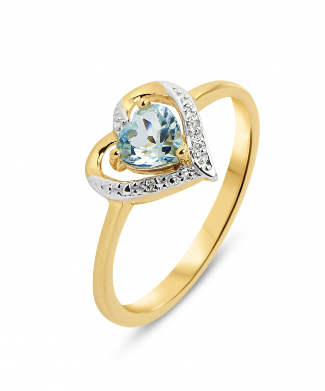 Bague Coeur Or jaune 375 Topaze Bleue traitée et Diamant