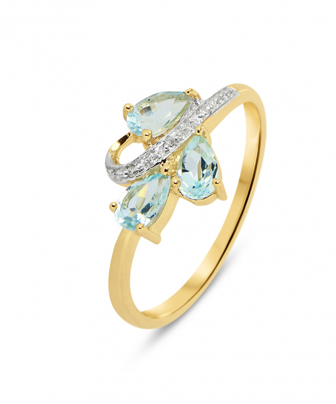 Bague Or jaune 375 Topaze Bleue traitée et Diamant