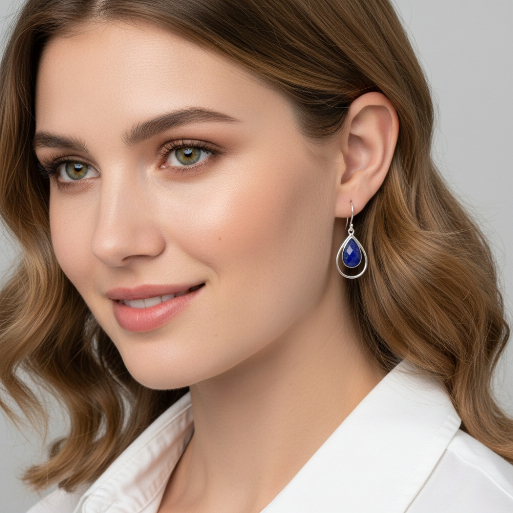 Boucles d'oreilles Pendantes en Argent et Lapis Lazuli