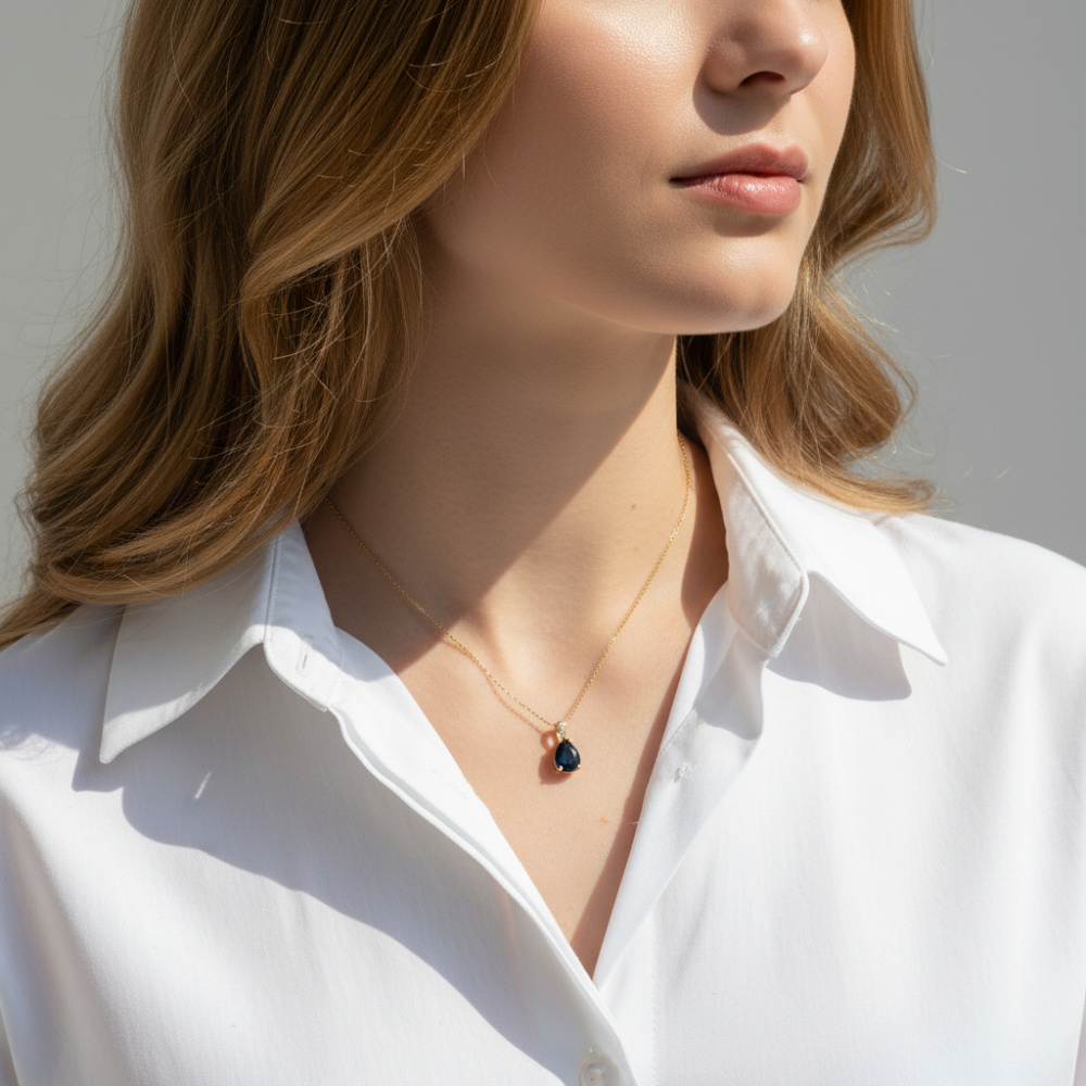 Pendentif Or Jaune 750 Saphir Poire 9x7mm et Diamant - Ref : 46384