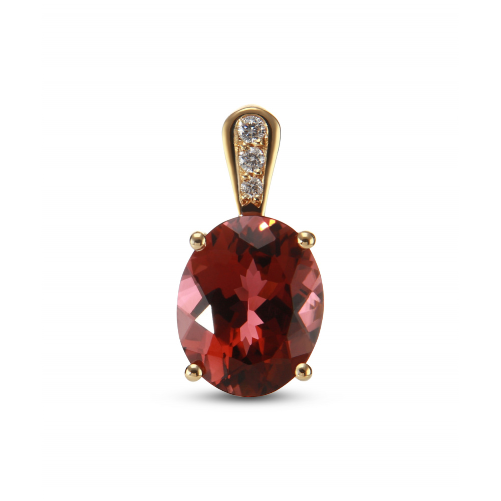 Pendentif Or Jaune 750 Tourmaline Rose Ovale 10x8mm et Diamant