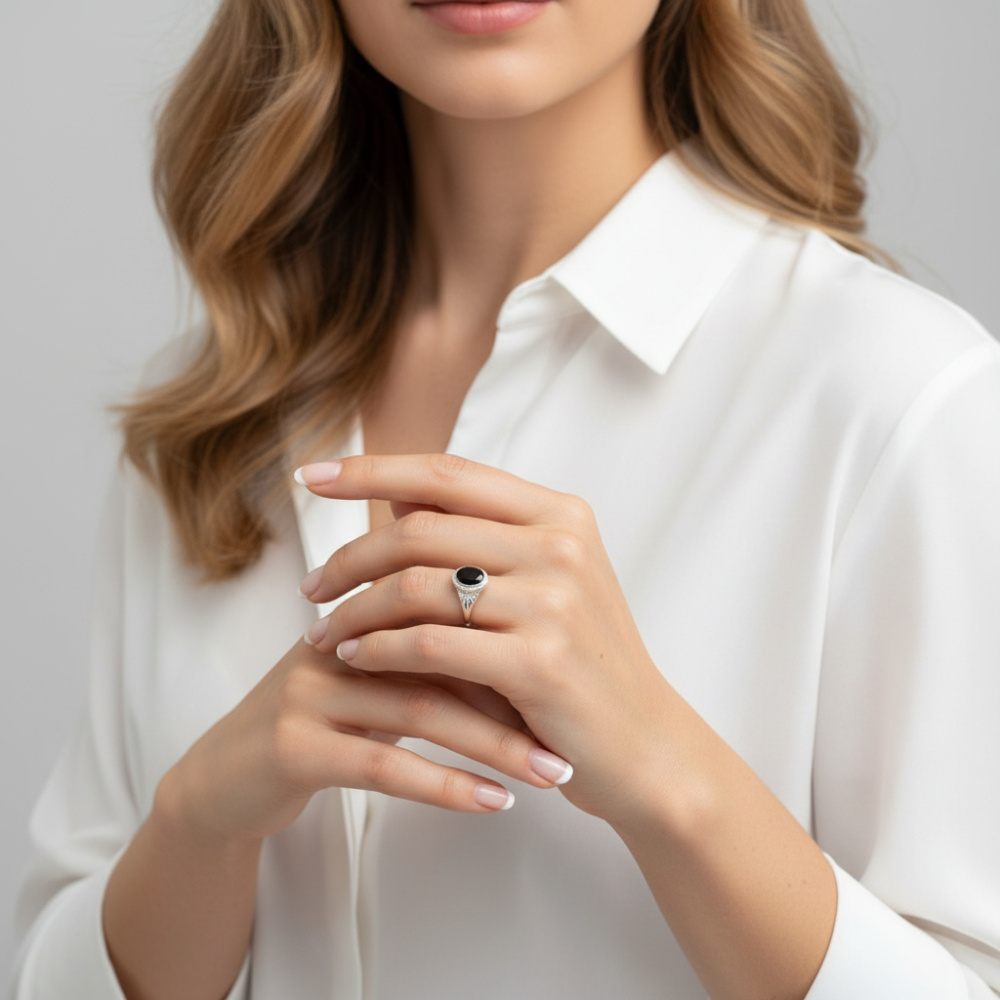 Bague en Argent 925 sertie d'une pierre de 9x7mm