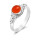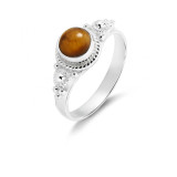 Apportez une note de couleur bien vive à vos tenues en portant cette bague. Elle est décorée par une turquoise reconstituée ronde. La pierre reconstituée prend place au centre de l'anneau, elle est mise en avant grâce à la monture qui l'accueille en serti clos. Elle laisse apparaître sa belle face parée par des filaments noirs incrustés. La monture est entièrement en argent et elle s'associe bien avec la turquoise reconstituée. De plus, sur le dessus de jolis ornements entourent la pierre reconstituée.