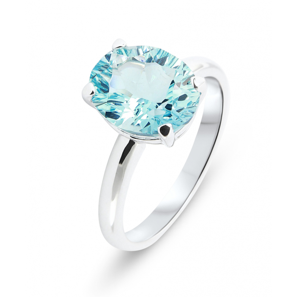 Bague en Or Blanc 750 sertie d'une Topaze Bleue traitée ovale de 11x9mm (4.2 carats)
