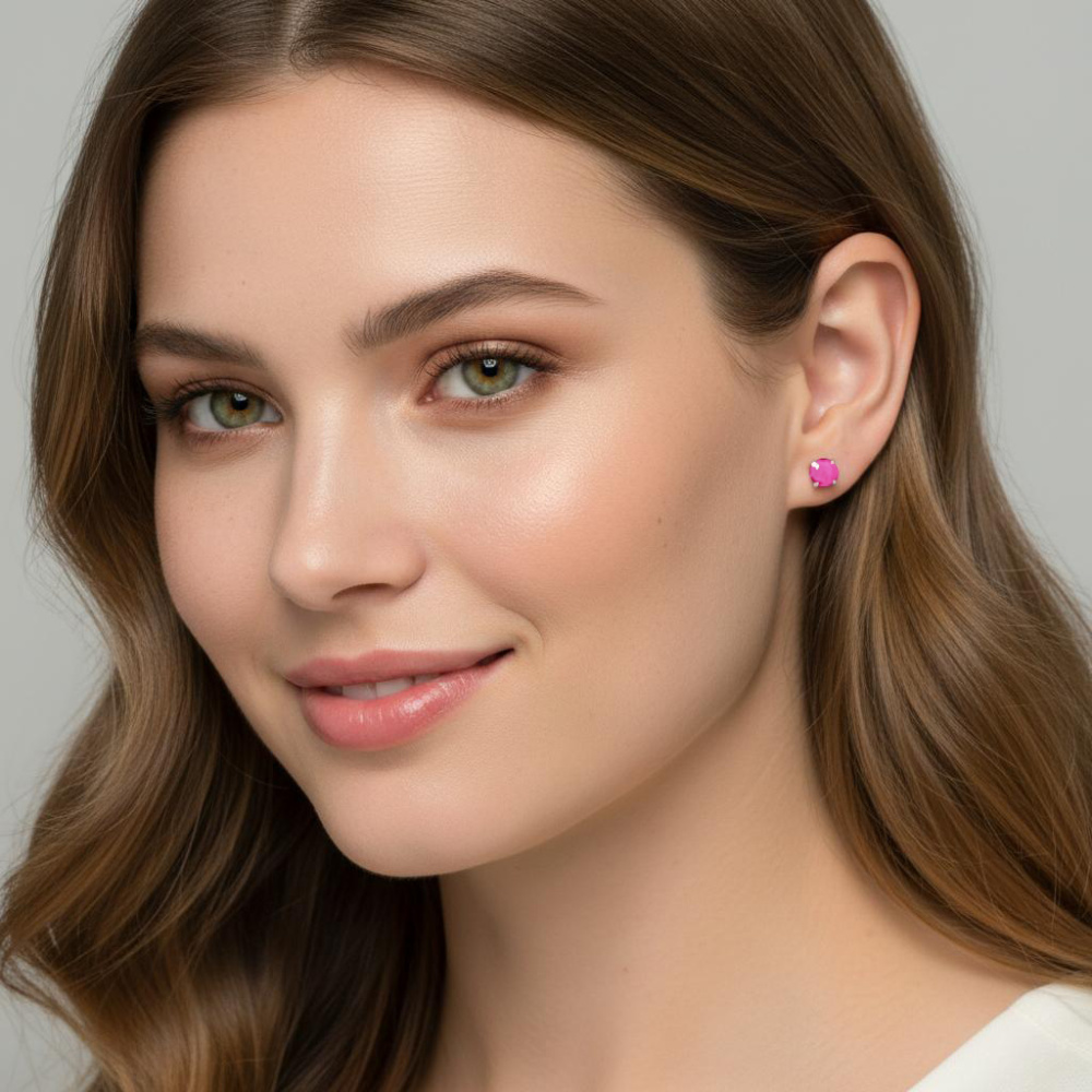 Boucles d'oreilles Or Blanc 750 Rubis 5mm