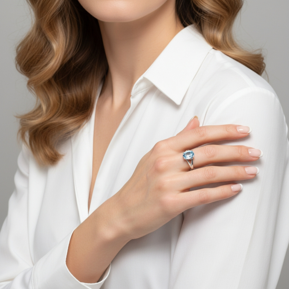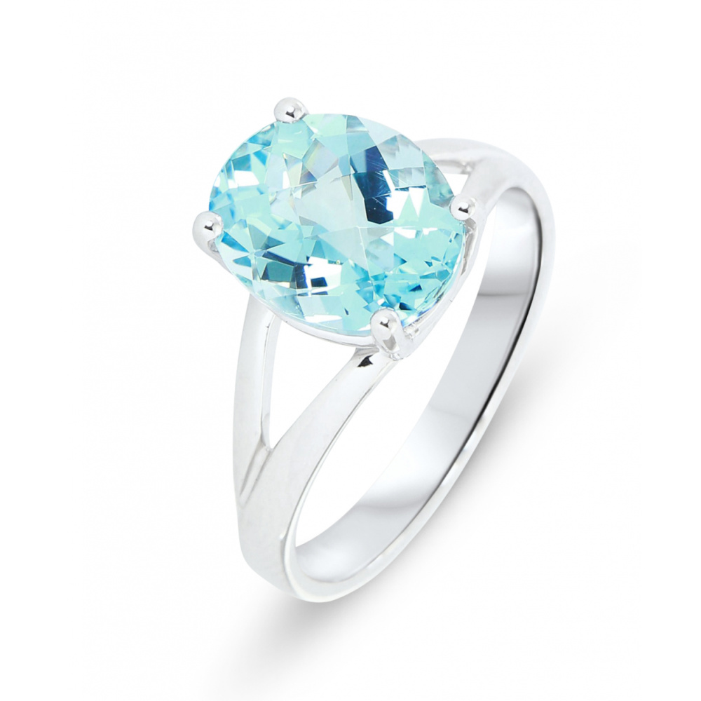 Bague Or Blanc 750 Topaze Bleue traitée ovale de 11x9mm