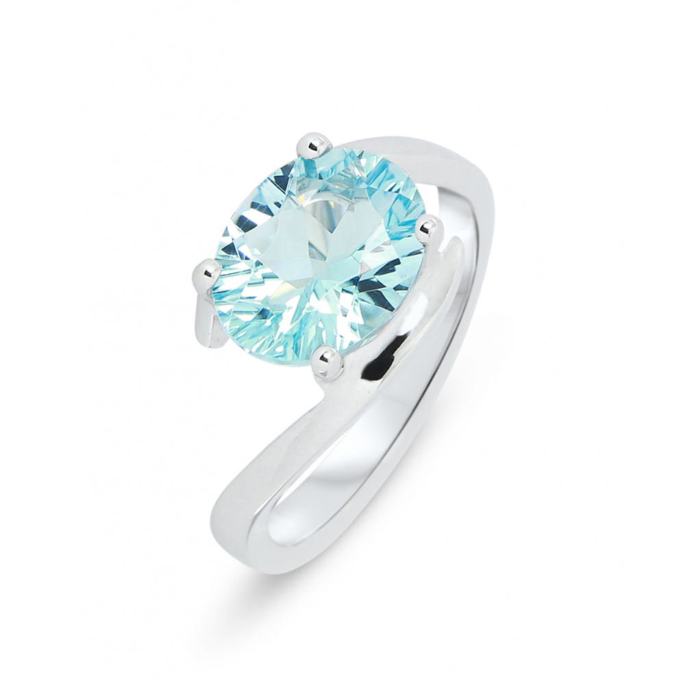 Comment ne pas craquer devant la beauté d'une telle pièce de joaillerie ? Cette bague est issue d'un harmonieux mariage entre l'or blanc 750 et la topaze bleue traitée. La monture à corps croisé renforce l'esprit original et exclusif de ce bijou féminin. Au milieu trône la pierre fine ovale fixée par quatre griffes.