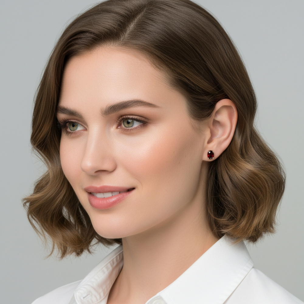 Boucles d'oreilles Or Jaune 750 Grenat Ovale 7x5mm