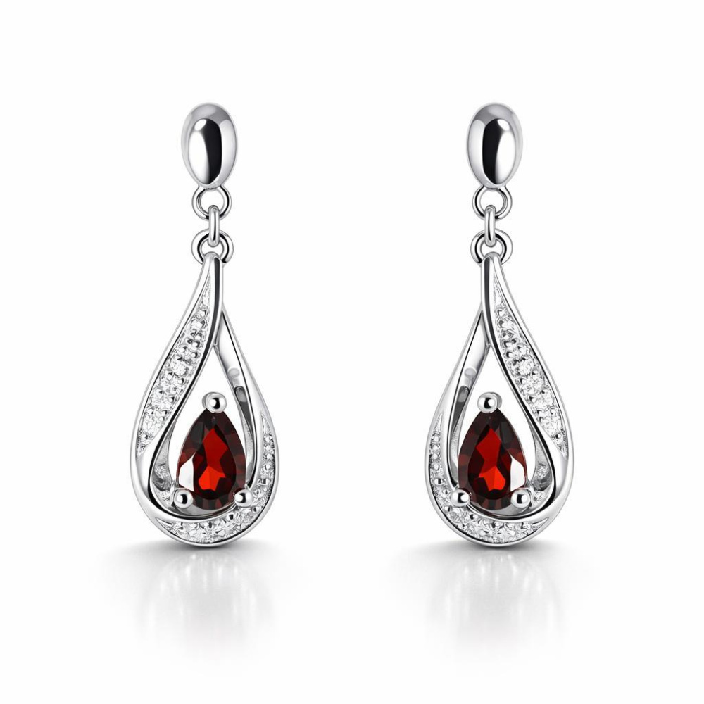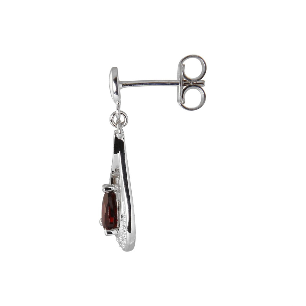 Boucles d'oreilles Pendantes Or Blanc 375 Grenat poire de 5x3mm et Diamants
