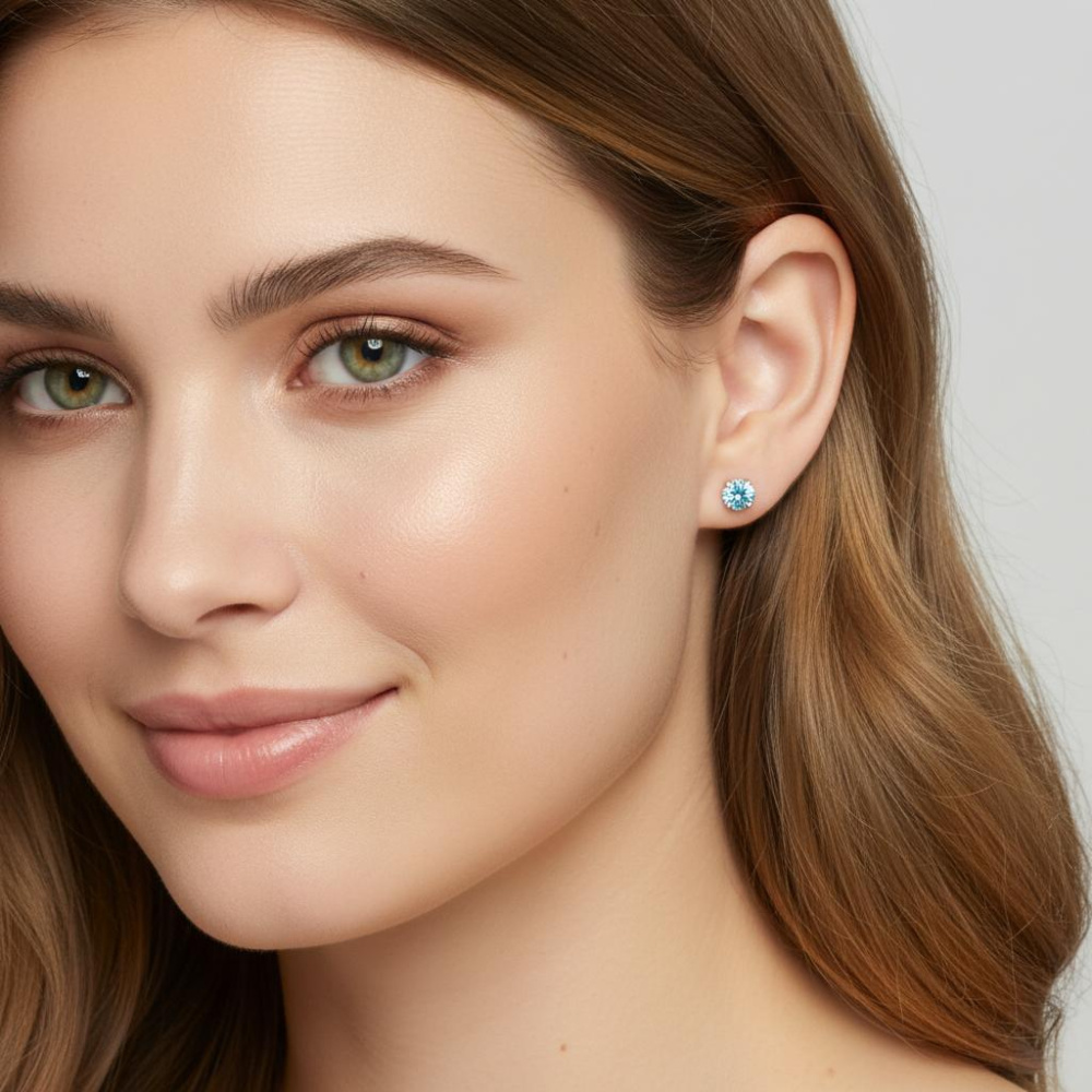 Boucles d'oreilles Or Jaune 375 Topaze bleue traitée 5mm