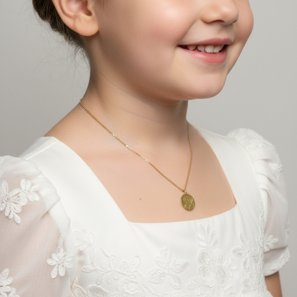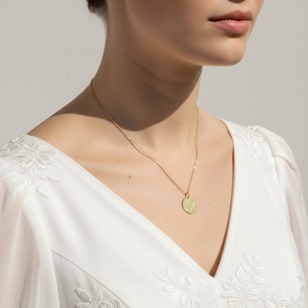 Laissez-vous charmer par les lignes douces de cette médaille en or jaune qui symbolise la candeur et l'innocence de l'enfance. Dans un bel effet graphique, le bijou de forme ronde révèle l'image d'un ange tenant un oiseau entre ses mains. Par ses traits fins et épurés habilement dessinés au crayon, cette médaille révèle modernité et tendresse. Cette médaille s'offre à l'occasion d'une communion, d'un baptême ou pour célébrer des évènements importants de la vie.