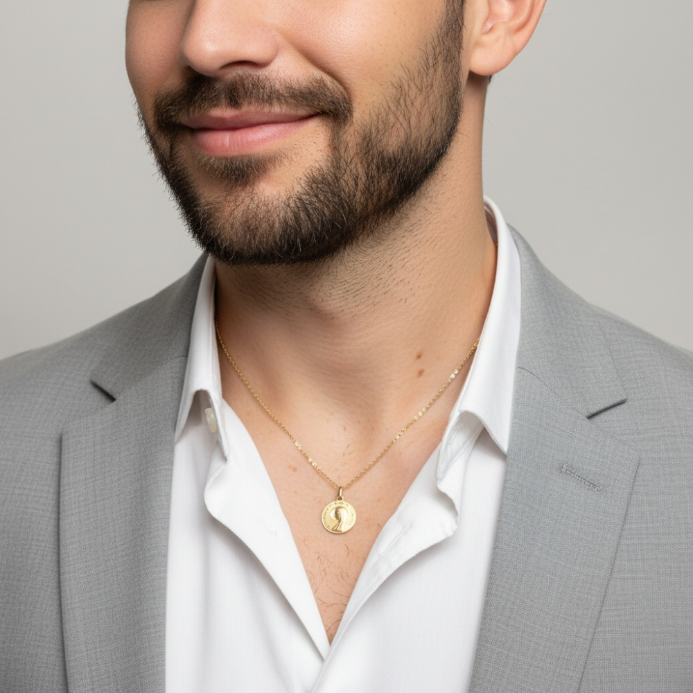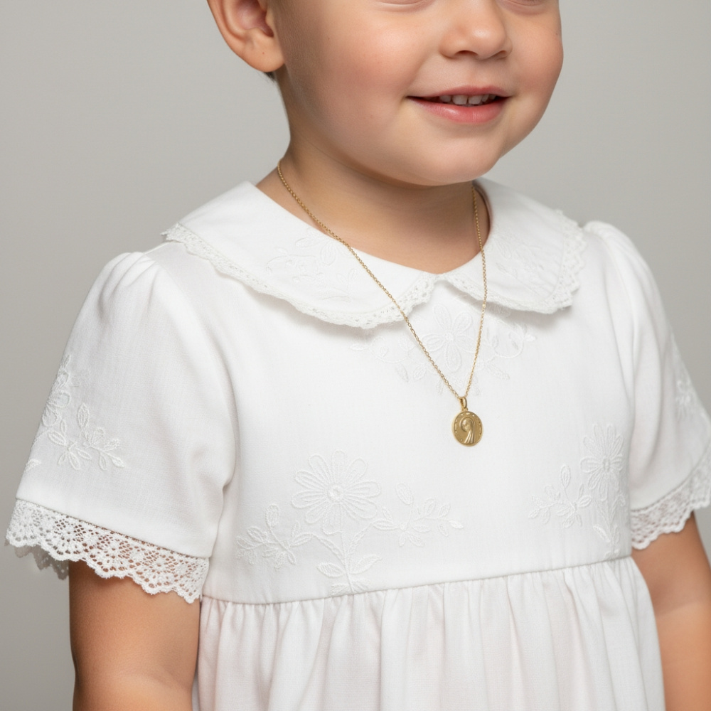 Dignement représentée sur les oeuvres des plus grands peintres jamais connus, dont Raphaël ou Botticelli, la Vierge se redécouvre sur cette sublime médaille en or jaune. À offrir lors d'une communion, d'un baptême ou tout autre évènement heureux, le bijou dévoile les traits fins de la Madone auréolée. Les deux faces de la médaille ont bénéficié d'une finition satinée. La face avant quant à elle est embellie d'un effet diamanté qui renforce l'originalité du bijou.