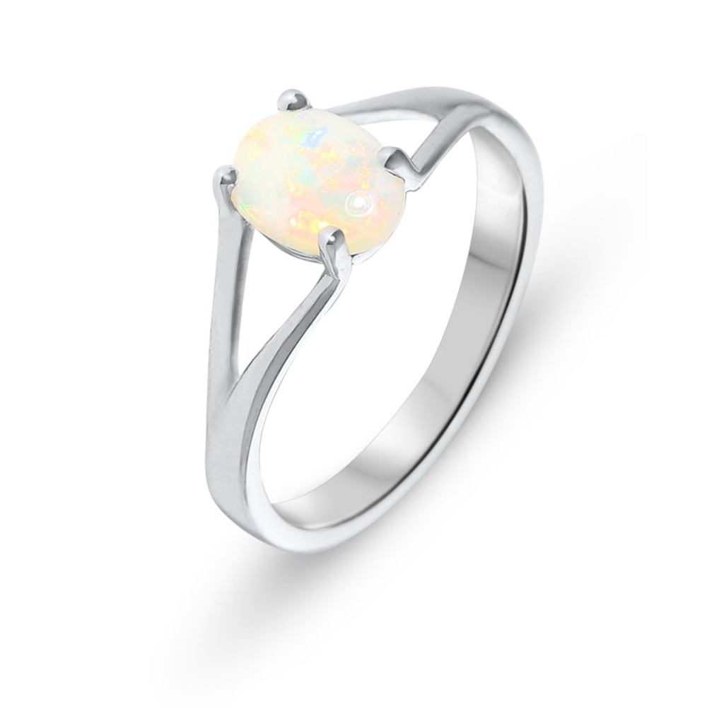 Bague Or Blanc 750 Opale Ovale8x6mm